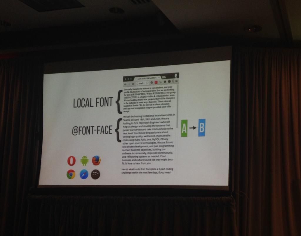 using recruiter spam email to illustrate font loading at #VelocityConf. Genius.